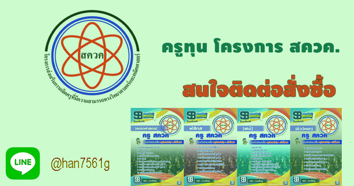 ((HIT))คู่มือเตรียมสอบครูทุนโครงการ (สควค.)โครงการส่งเสริมการผลิต … อ่านเพิ่มเติม +(ด่วนๆๆ)+ รวมแนวข้อสอบครูทุน สควค.โครงการส่งเสริมการผลิตครูที่มีความสามารถพิเศษทางวิทยาศาสตร์และคณิตศาสตร์ ปี2560