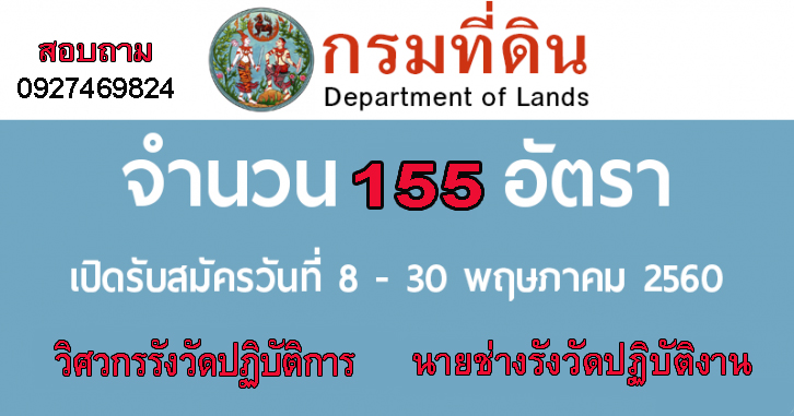 กรมที่ดิน เปิดรับสมัครสอบเข้ารับราชการ จำนวน 155 อัตรา ต้องผ่านภ … อ่านเพิ่มเติม (เจาะลึก) เปิดสอบกรมที่ดิน ตำแหน่งวิศวกรรังวัดปฏิบัติการ จำนวน 5 อัตรา