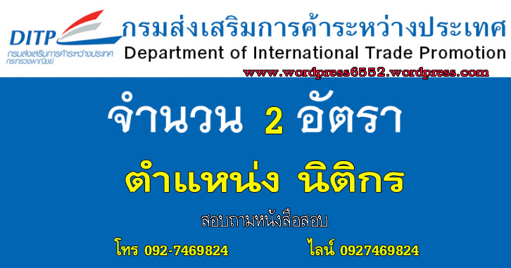 (ใหม่ล่าสุด) ประกาศจากกรมส่งเสริมการค้าระหว่างประเทศรับสมัคร ตำแหน่ง นิติกร จำนวน : 2อัตรา อัตราเงินเดือน : 18,000 บาท