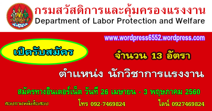 การรับสมัครสอบเข้ากรมสวัสดิการและคุ้มครองแรงงาน