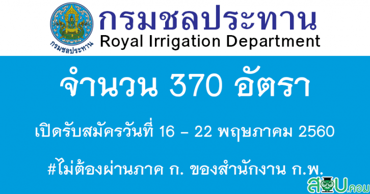 (ไม่ต้องผ่านภาค ก. ของ ก.พ.) แนวข้อสอบ กรมชลประทาน รับจำนวน 370 อัตราด่วนๆ