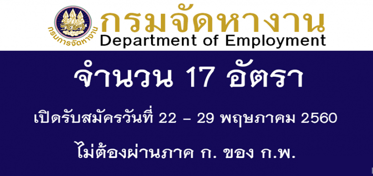 (ไม่ต้องผ่านภาค ก. ของ ก.พ.) กรมการจัดหางาน รับสมัครเป็นพนักงานราชการ จำนวน 17 อัตรา สมัครทางอินเตอร์เน็ต 22 – 29 พฤษภาคม 2560