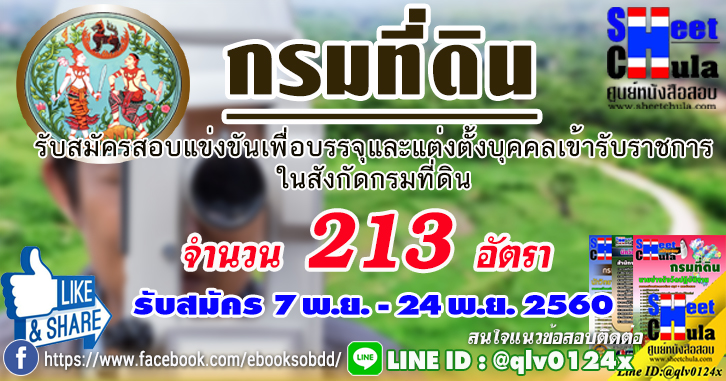 กรมที่ดิน รับสมัครสอบสอบบรรจุรับราชการ จำนวน 213 อัตรา ตั้งแต่วันที่ 7 – 27 พฤษจิกายน 2560 อ่านเพิ่มเติม แนวข้อสอบวิศวกรรังวัดปฏิบัติการ กรมที่ดิน