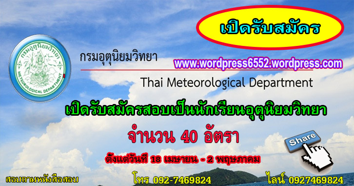 กรมอุตุนิยมวิทยา เปิดรับสมัครสอบเป็นนักเรียนอุตุนิยมวิทยา จำนวน 4 … อ่านเพิ่มเติม (เปิดแล้ว) กรมอุตุนิยมวิทยา เปิดรับสมัครสอบเป็นนักเรียนอุตุนิยมวิทยา จำนวน 40 อัตรา ตั้งแต่วันที่ 18 เมษายน – 2 พฤษภาคม