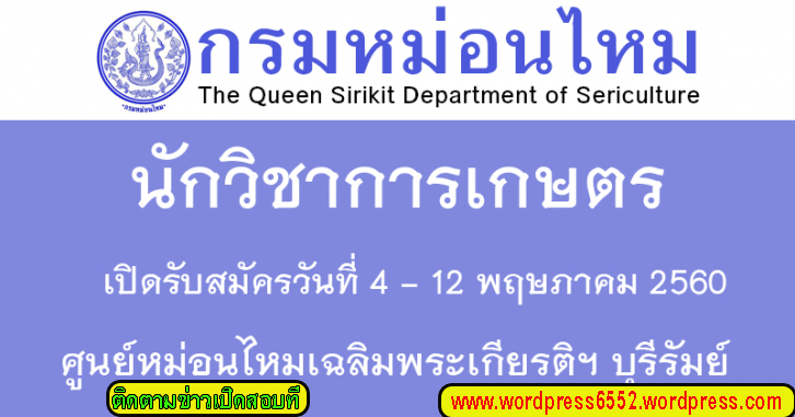 กรมหม่อนไหม รับสมัครเป็นพนักงานราชการในตำแหน่งนักวิชาการเกษตร(ปร … อ่านเพิ่มเติม (ด่วนๆๆ) กรมหม่อนไหมบุรีรัมย์ เปิดสอบ ตำแหน่ง นักวิชาการเกษตร(ปริญญาตรี)