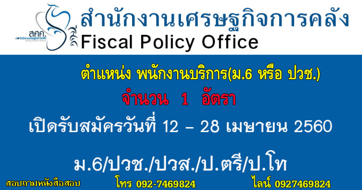 สำนักงานเศรษฐกิจการคลัง กระทรวงการคลัง รับสมัครคัดเลือกเป็นลูกจ้ … อ่านเพิ่มเติม (ด่วนเลยๆ) สำนักงานเศรษฐกิจการคลังเปิดรับสมัครงานตำแหน่ง พนักงานบริการ(ม.6 หรือ ปวช.) จำนวน 1 อัตรา